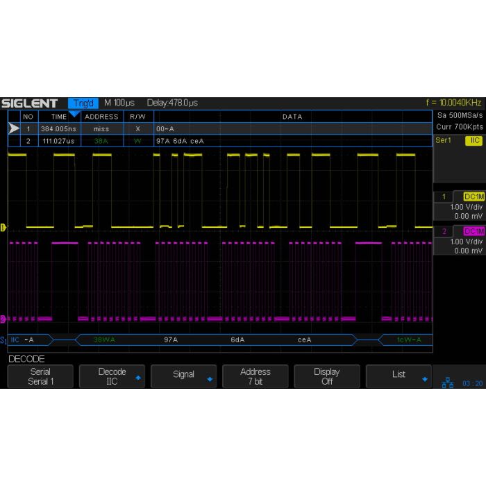 Lisens for aktivering av seriell dekoding på Siglent SDS1000X oscilloskop