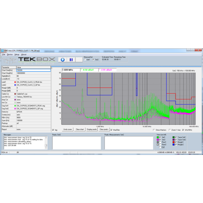 The Tekbox EMC compliance software EMCview for PCs is a user-friendly EMC pre-compliance testing of radiated and conducted emissions. It is a perfect complement for automated testing using our LISNs, RF current probes, measurement antennas and TEM Cells.